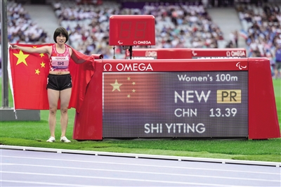当日,在巴黎残奥会田径女子100米T36级决赛中,中国选手史逸婷以13秒39的成绩获得冠军,并打破残奥会纪录。 新华社发
