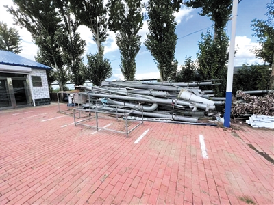 在四季青镇新民村,一大堆大型喷灌设备零件被摆在一个院子的角落里。“一次都没用过,只剩下架子和轱辘。”村干部告诉记者,设备第一年是完好的,第二年开始丢,第三年就不剩啥了。