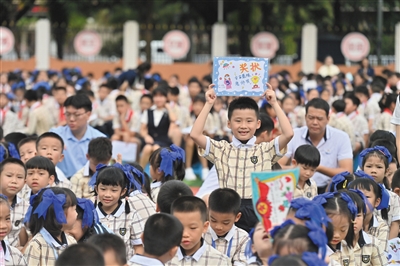 ▲9月10日,南宁市滨湖路小学的学生展示送给老师的手绘作品。