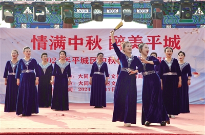 本报讯 (记者 王春艳) 饱含深情的演唱、热情洋溢的舞蹈……17日,代王府广场乐声悠扬、欢乐不断,由平城区文旅局主办,平城区文化馆承办的“情满中秋 醉美平城”2024年平城区中秋佳节文艺演出在这里精彩上演。