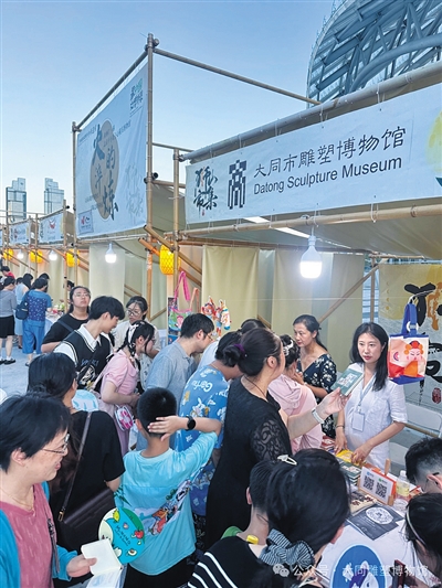 此次市集吸引全国30多家博物馆和文博机构参与,大同市雕塑博物馆与古陶文明博物馆、北京于小菓点心模具博物馆、朱炳仁·铜组成了“火的淬炼”组合。这个特别组合展示了陶瓷、铜艺、雕塑等艺术形式的历史发展与技艺传承,吸引了来自全国各地的文博爱好者。市雕塑博物馆展位吸引了大量观众驻足,展出的文创包括以馆藏雕塑名家作品及青少年雕塑作品展览收藏作品为灵感设计的特色冰箱贴、毛绒公仔、挎包、盖章本等,这些文创产品有的展现了传统雕塑艺术精髓,有的展示了当代青少年的视角与思考,呈现出多元化创意风格。