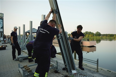 ▶ 9月17日,消防员在德国奥得河畔法兰克福筑起防洪墙。
