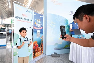 ▲ 9月19日,乘坐南航C919首航航班的旅客在广州白云国际机场航站楼拍照留念。