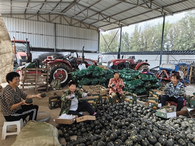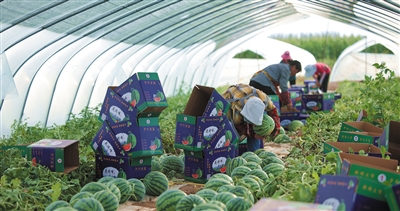 现代农业产业园仓储分拣中心负责人辛宏权介绍,园区通过品种对比实验和BLOF生态和谐型种植技术应用,确保西瓜的“高品质”,通过分拣、包装、保鲜,保证每个瓜都是“高颜值”,并通过加盟百果园等多家品牌产销平台,让好瓜卖上好价钱。 本报记者 苑捷