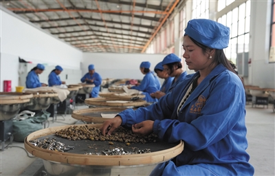 ▲9月22日,工作人员在龙陵县石斛交易市场加工车间进行铁皮枫斗加工。