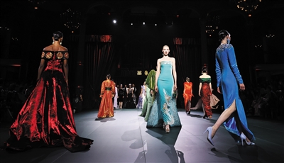 ▲9月28日,模特在法国巴黎举行的“恭王府服饰秀”上展示服装。