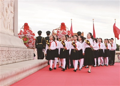 9月30日,烈士纪念日向人民英雄敬献花篮仪式在北京天安门广场隆重举行。 新华社发