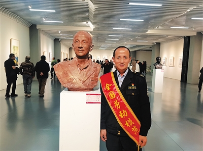 “太感动了,这样的展览直抵心灵深处,让我发自内心的自豪。”全国劳模、公交司机冯冰说,这次展览共有他的两件雕塑作品和一幅素描画,神态逼真,饱含了艺术家的辛勤付出,更是自己以后在本职岗位上作好模范带头作用的动力。