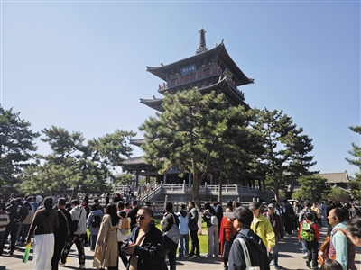 本报讯 (记者 史涌涛) 伴随着《黑神话:悟空》游戏的火爆,取景点之一华严寺也迎来众多“天命人”打卡,国庆假期华严寺景区共接待游客16.2万人次,创历史新高。长假前五天接待游客人数,比2019年同期增长幅度均在300%以上,其中2日到4日每天突破3万人次,体现了我市文旅事业蓬勃增长的势头。