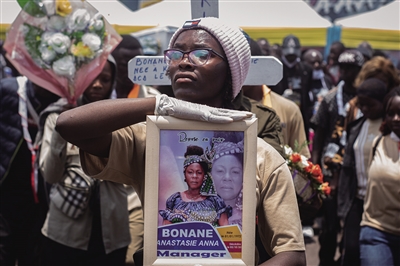 ▲ 10月10日,在刚果(金)北基伍省首府戈马市,人们参加基伍湖沉船事故罹难者葬礼。