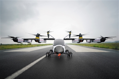 ▲10月12日,在成都淮州机场拍摄的沃飞长空AE200电动垂直起降航空器(eVTOL)。