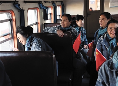 ▲10月12日,游人乘坐桦南县的蒸汽小火车。