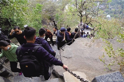 民宿老板董先生看到有些游客在网上发帖结伴而行爬山,就自己开通了陪爬业务。
