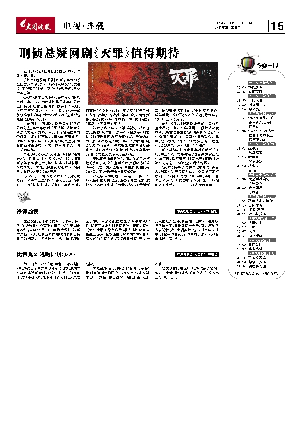 第15版:电视连载