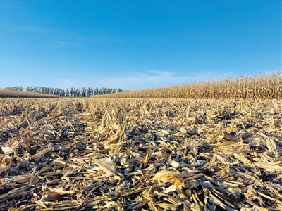 在全国产粮大县吉林省长岭县部分镇村,秋收后的玉米地里铺着一层秸秆。“今年收成不错,保护性耕作发挥了大作用。”种粮大户刘军说。