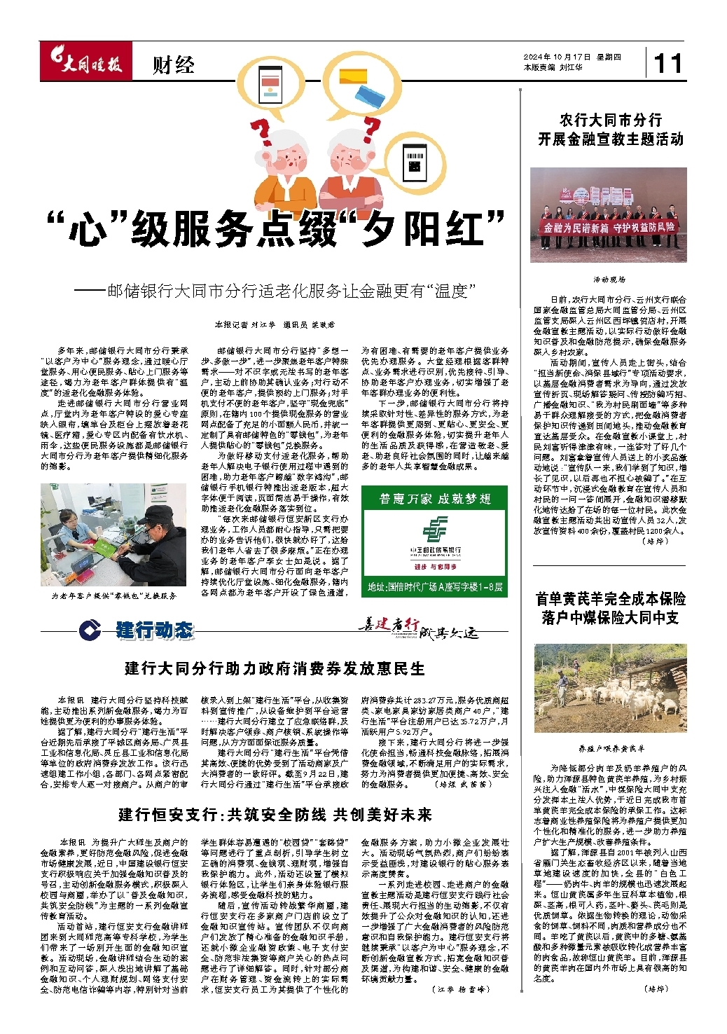 ~~~—邮储银行大同市分行适老化服务让金融更有“温度”
