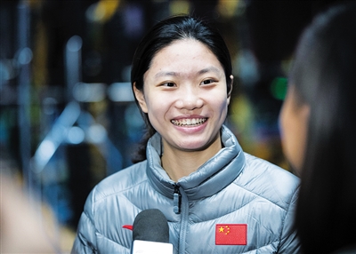10月17日,中国短道速滑队队员王晔接受媒体采访。