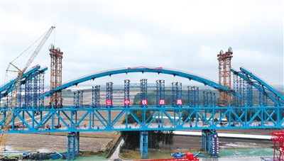 雄商高铁黄河特大桥首个拱肋合龙