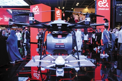 ▲这是10月17日在阿联酋迪拜第44届海湾信息和通信技术展现场拍摄的亿航智能无人驾驶航空器。