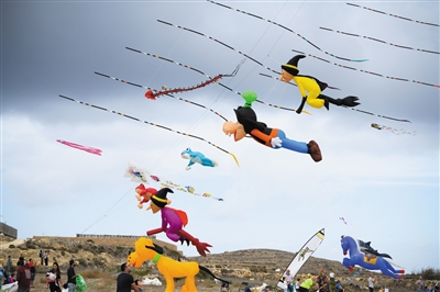 ▲10月19日,在马耳他戈佐岛阿尔卜,人们在第7届戈佐国际风筝节上放风筝。