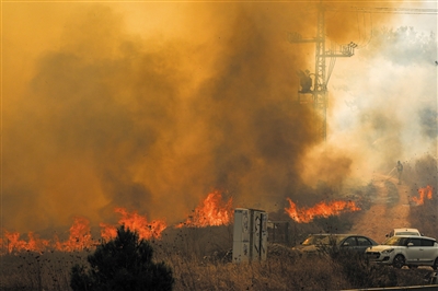 ▲ 10月20日,以色列北部的罗什皮纳遭受黎巴嫩真主党火箭弹袭击后燃起大火。