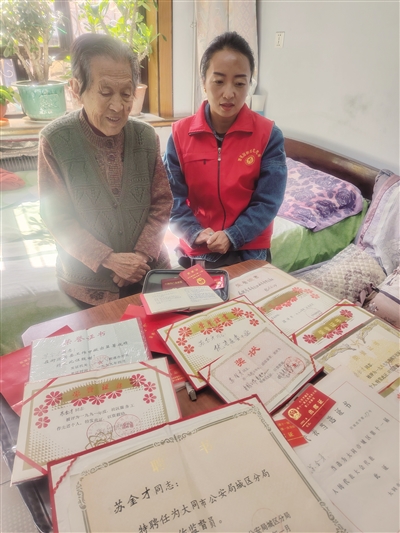如今86岁高龄的苏金才,依然精神矍铄。在记者采访时,她从抽屉中拿出多年来获得的40余本荣誉证书,摆满了桌子。“这些证书记录了我的前半生,是我人生的参与者、亲历者和见证者。”苏金才说,她的父亲是一名党员,经常教育她,没有党的正确领导,就没有今天人们衣食无忧的幸福生活。