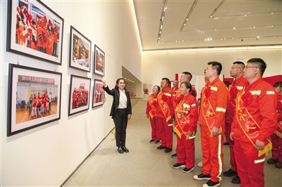 图为环卫工人参观环卫历史变迁展。 本报记者 韩堃 摄