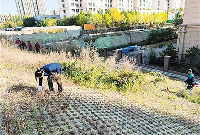 悦家物业 清除杂草 美化园区