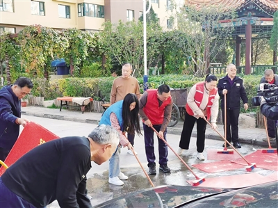 本报讯 (记者 段雨萌) 为扎实推进文明城市创建活动,提升物业服务品质,近日,平城区振华街道同泉里社区联合辖区内河东物业在金港丽城小区开展清洗地垫活动,把干净和温馨送给居民。