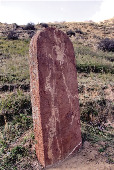 发现界碑的那一刻,所有辛苦化作兴奋。两块界碑一南一北,分立在沟的两侧,暗红色的材质与周边的植被近乎相融,远望不易察觉,只有走到近处,才能体会它们威严的气质。两碑高过两米,厚实稳重,石质均为砂岩,应属就地取材。北碑上刻“大同中路分属西界 万历二十七年季秋吉日立”,南碑上刻“大同威远路分属东界 万历二十七年季秋吉日立”。