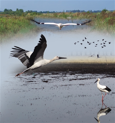 监测数据显示,今年在桑干河国家湿地公园驻足的东方白鹳约有10只左右。