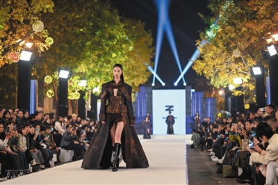 ▲10月26日,模特在天津解放北路上搭起的T台走秀。