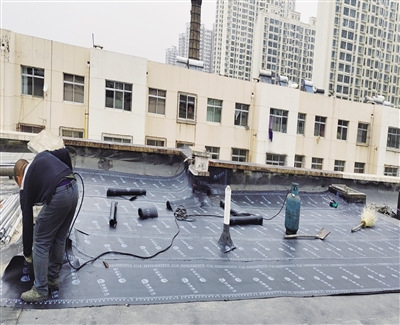 日前,平城区友谊街社区联合国东物业为云汽园小区维修居民楼楼顶,解决烦扰居民的漏水问题,受到居民称赞。 本报记者 段雨萌