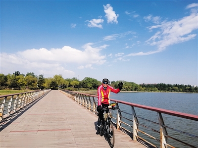 花白的头发、浓密的眉毛,穿着一身骑行服、戴着头盔,骑着一辆自行车穿梭在文瀛湖风景区,谁会想到眼前这位身手矫健的“骑士”已经71岁。老人名叫左建灵,身体硬朗、精神矍铄、步履轻快。老人笑着告诉记者:“我身体很好,各项指标都正常,平时很少感冒。”