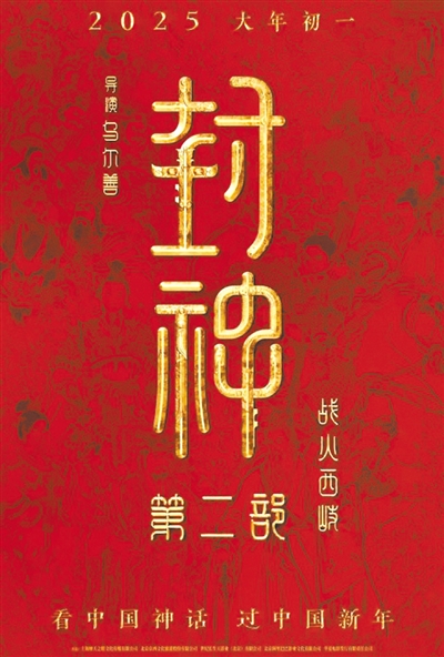 29日,由乌尔善执导的《封神第二部:战火西岐》宣布定档2025年农历大年初一,进军春节档。定档海报上,隽永大气的电影片名极具东方美学特色,“封神”字体上古朴高雅的纹饰风格源于商代后期的青铜器。细看之下,海报还暗藏片中西岐阵营和殷商阵营的主要出场人物。海报上引人入胜的“封神阵容”与红红火火的视觉元素都年味十足,一句“看中国神话,过中国新年”更是彰显出影片与春节档的气质。