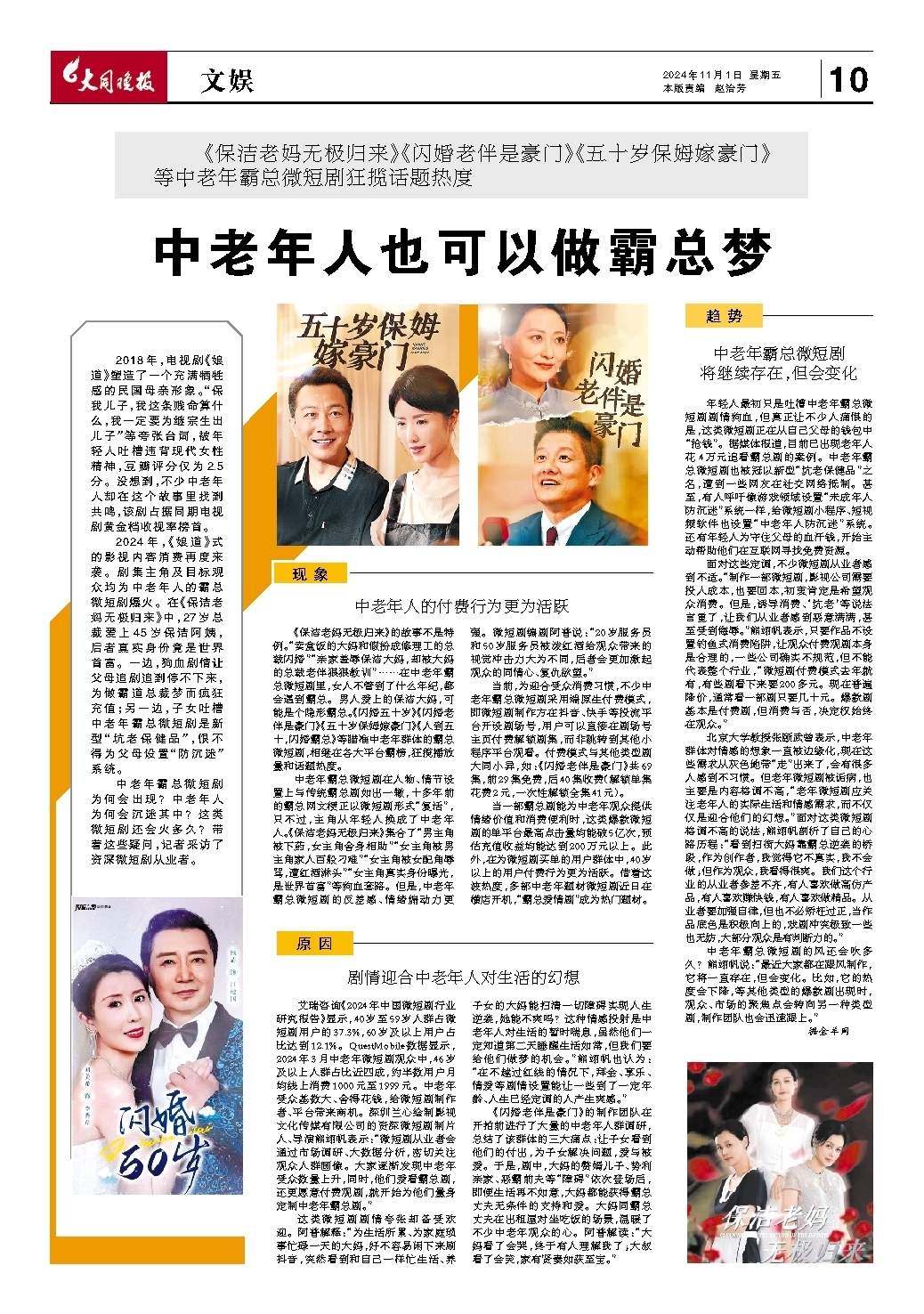 《保洁老妈无极归来》《闪婚老伴是豪门》《五十岁保姆嫁豪门》等中老年霸总微短剧狂揽话题热度~~~