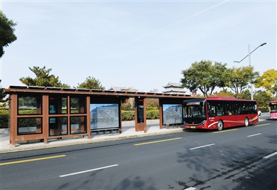更宽敞更高颜值,多块电子站牌可查看线路信息,还能提供手机充电等便民服务……记者昨日从市公交公司了解到,位于御河西路和阳南门站和云冈石窟景区外的两座高端智能化公交候车亭已正式启用。 图为和阳南门站新投用的智能化公交候车亭。