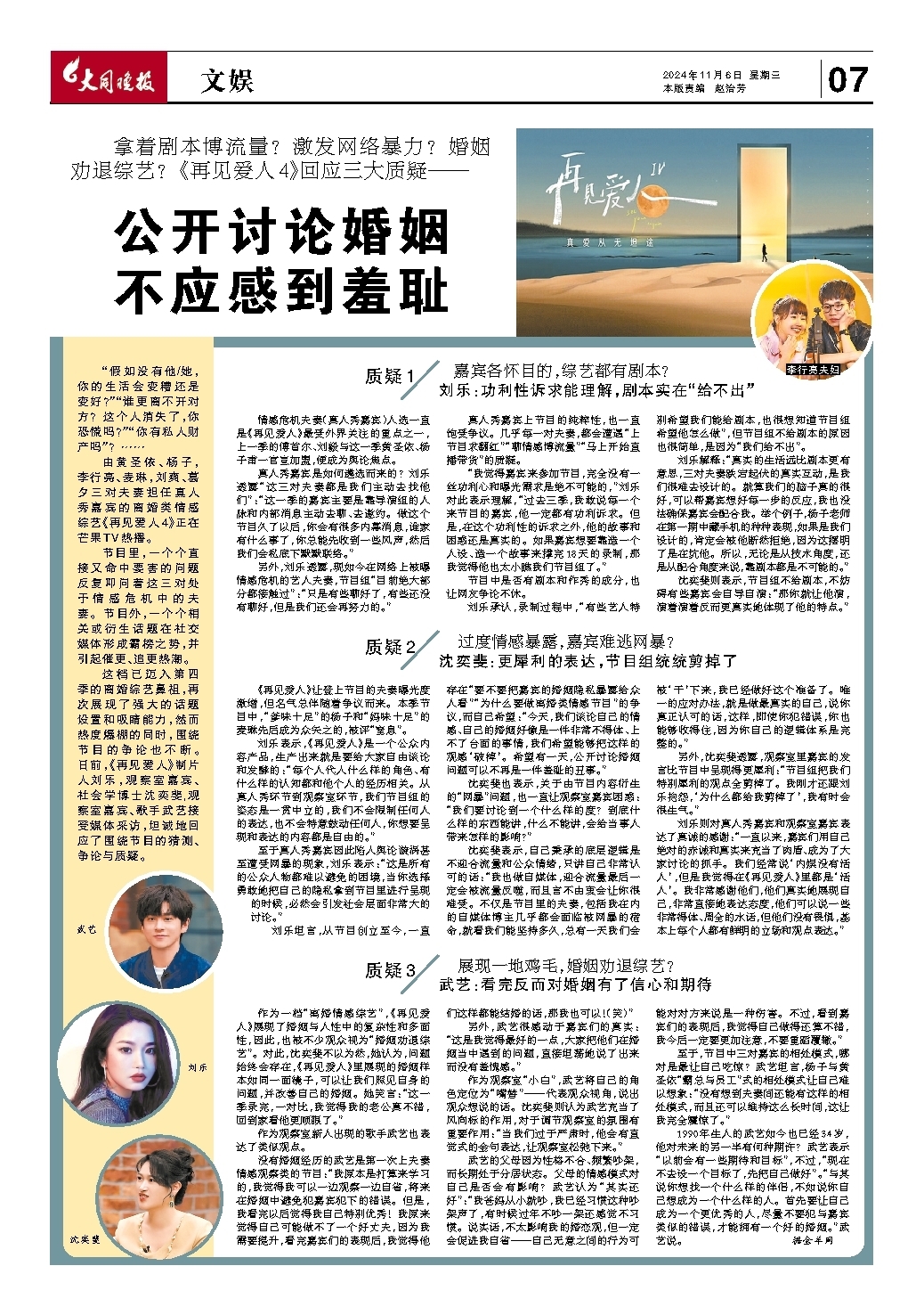 拿着剧本博流量?激发网络暴力?婚姻劝退综艺? 《再见爱人4》回应三大质疑——~~~