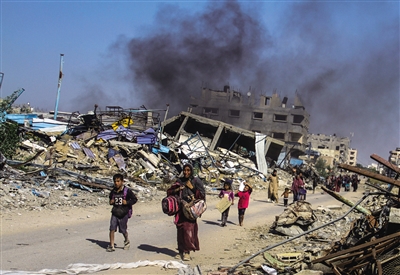 ▲ 11月5日,巴勒斯坦民众从加沙地带北部拜特拉希亚镇逃到加沙城。