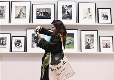 ▶ 11月6日,一名女子在法国巴黎大皇宫举办的巴黎摄影博览会媒体日上参观。
