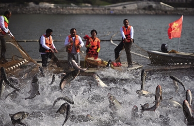 据介绍,武宁县位于庐山西海湖畔。近年来,当地通过统一放养、以鱼养水、科学捕捞等方式,力求实现生态渔业的长远发展。 新华社发