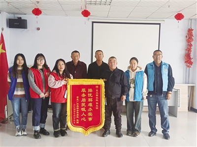 本报讯 (记者 郑林) 近日,家住酱菜厂家属楼的居民代表将一面写有“排忧解难办实事 服务居民暖人心”的锦旗,送到平城区新华街道东风园社区,感谢社区工作人员帮助小区居民解决了天然气开通问题。