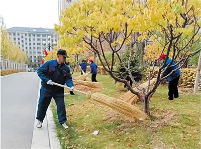 物业针对落叶量大小,及时采取措施,加大了对落叶的清扫、收装、清运力度,确保小区绿地及路面保持整洁。 (冬梅)