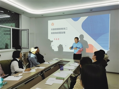 谁都想拥有一段恩爱的感情,渴望有一个懂你、爱你、疼你的伴侣,可在面对最亲密的爱人时可能又不自觉的百般挑剔。在当天的夫妻恩爱秘诀主题课中,车喜荣从肯定的言语、珍惜的相处、精心的礼物、服务的行动、身体的接触五个方面详细讲解了夫妻相处之道,并不时以伴侣间富含杀伤力的对话为例,认人大笑的同时也带来深深的感悟。之后,给每人发了两张小纸片,其中一张对折,分别写伴侣婚前和婚后的优点,另一张写缺点。每个优点正十分,每个缺点负十分,最后看得分是正是负。一位居民分享道,平时觉得对方有很多臭毛病,哪哪都不对,可在要写下时突然发现毛病没那么多了,跟着老师听了几节课后,发现自己能够理解对方了,也能用欣赏的眼光看对方了,遇到分歧也能更好地沟通解决,心情一变美整个世界都变美了。