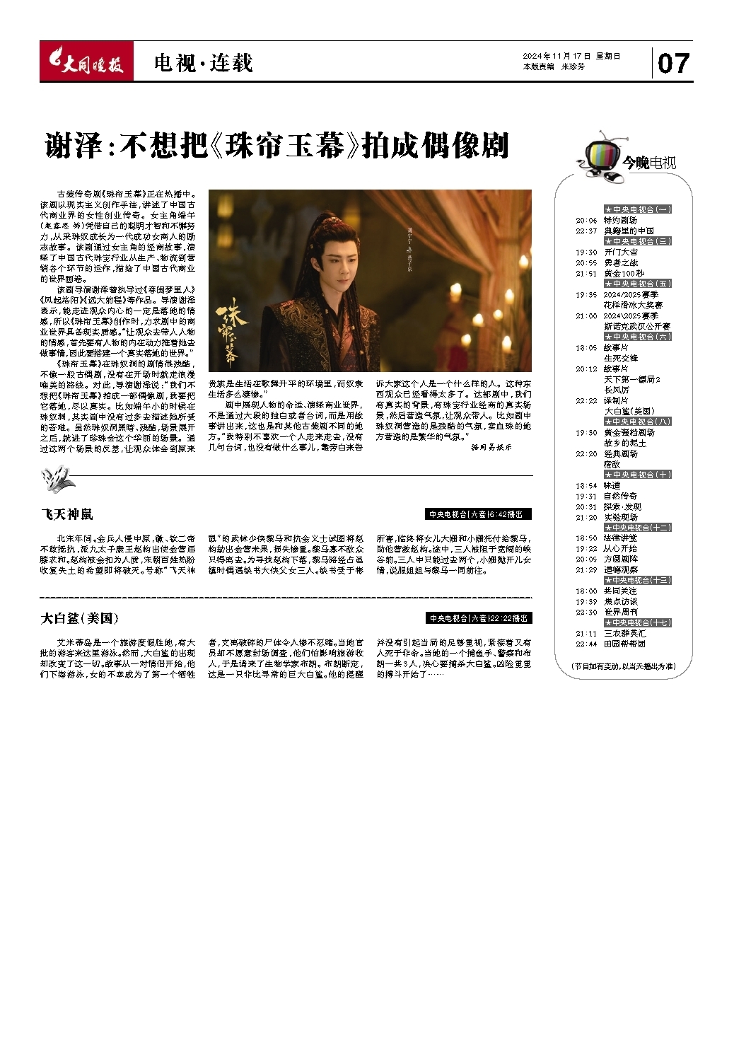 谢泽:不想把《珠帘玉幕》拍成偶像剧