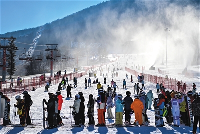 ▲11月23日,滑雪爱好者在位于吉林市冰雪经济高质量发展试验区的北大湖滑雪度假区内滑雪。