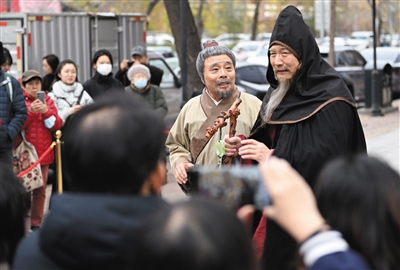 当日,天津人民艺术剧院经典话剧《钗头凤》片段在剧院门口的街角上演,让市民游客感受天津城市文化魅力。据了解,话剧《钗头凤》讲述了诗人陆游的一段人生经历。 新华社发
