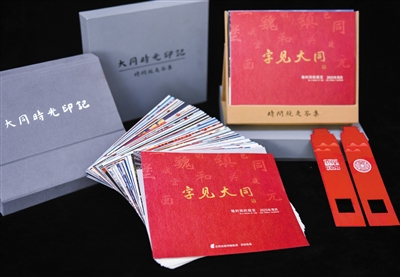 《字见大同》已成为大同文化的一个品牌。刚上新的2025年文创台历,不仅对重要节日、纪念日、活动日单独选图,还把二十四节气设计为一组明信片,涵盖了书法、古诗词等传统文化。台历附带一枚精美书签,制作成大同城楼的轮廓状并镂空开窗,配合台历使用,每日移动一格便是当日的“时间窗”,别有意趣。