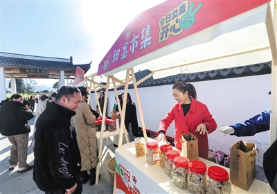 ▲ 11月29日,在安华镇丰江周村“甜蜜丰江”共富工坊的甜蜜市集上,游客和当地居民在选购红糖及相关的红糖衍生产品。