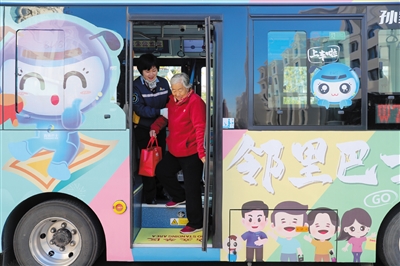 ▲11月30日,“邻里巴士”驾驶员搀扶老人下车。